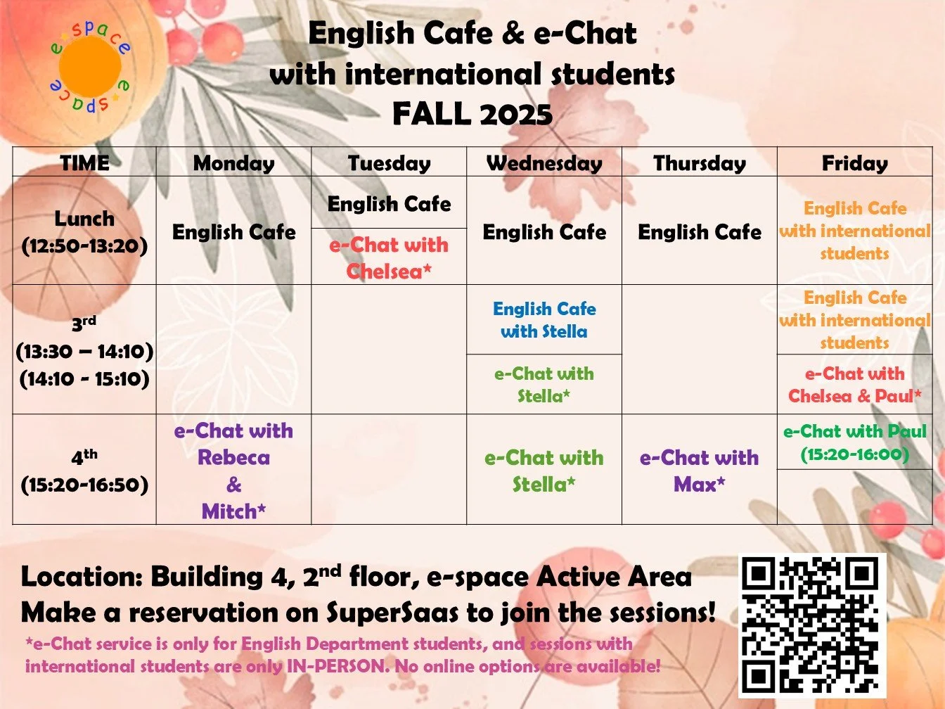 e-spaceの先生やe-spaceとEnglish Cafeの学生スタッフがいます。