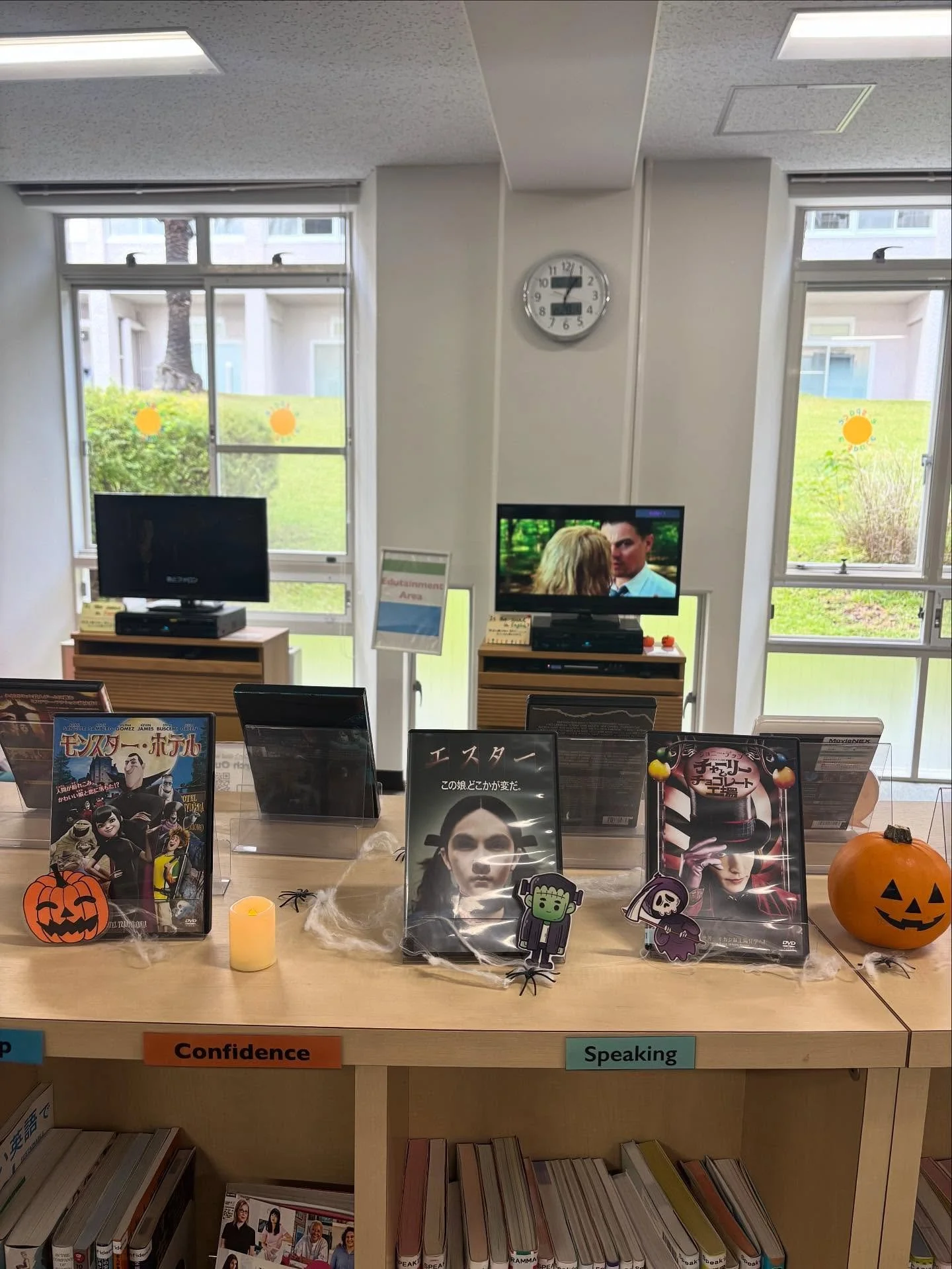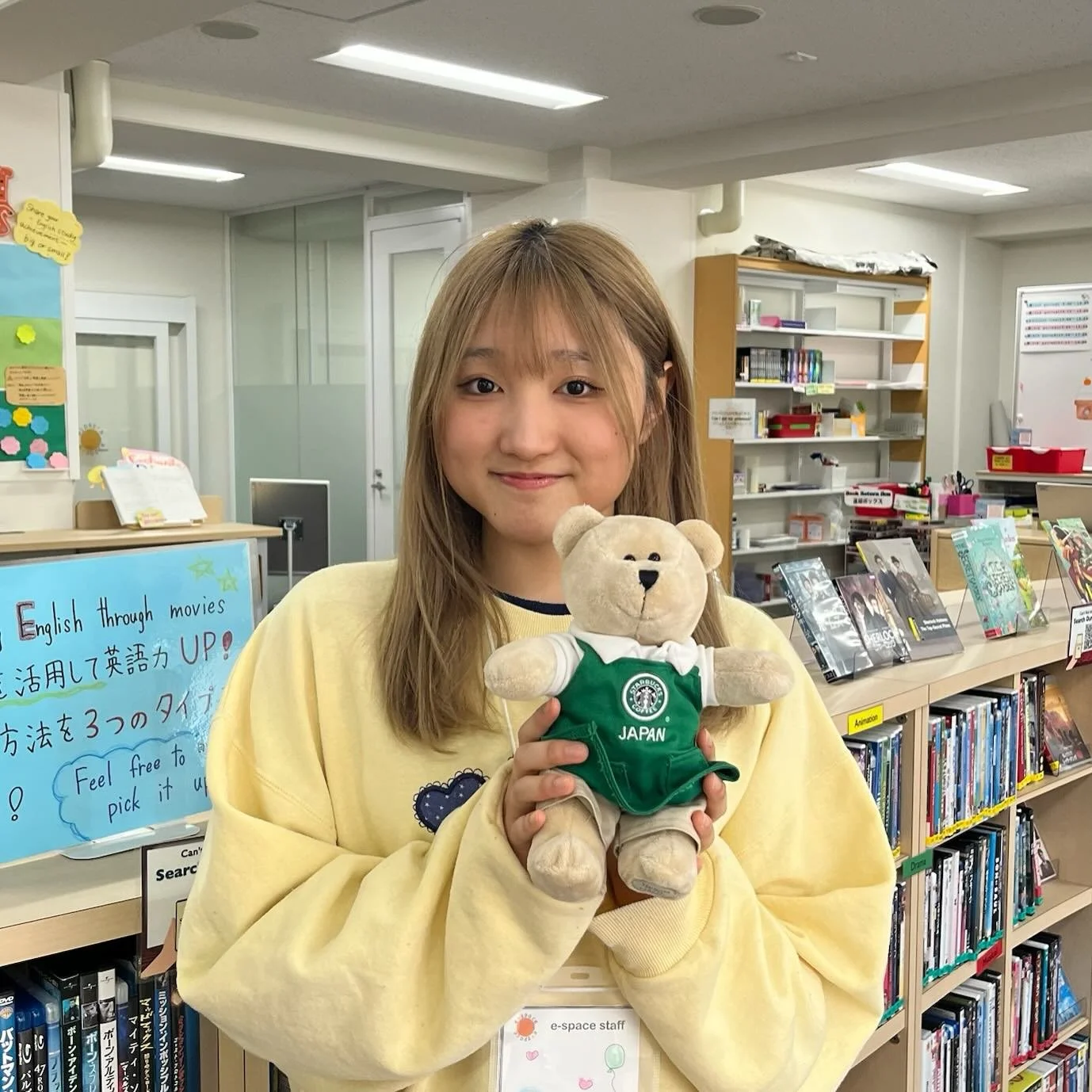e-spaceには英語レベル別読本、海外の雑誌、絵本、漫画、各種試験対策本、海外の映画やゲームなどがあります。