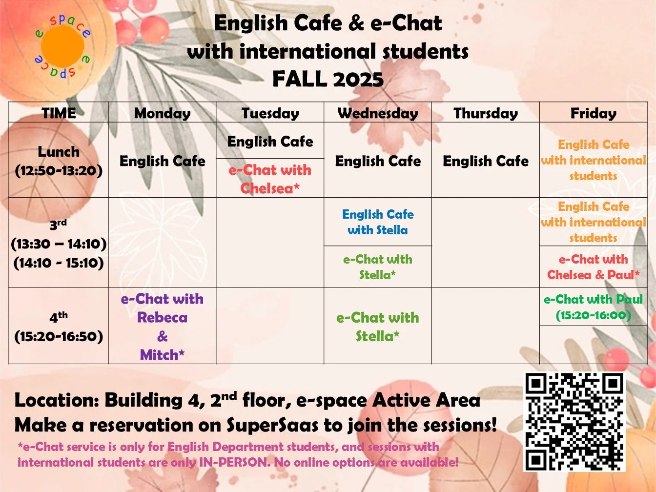 学習アドバイジング、e-Chat、English Cafe を利用できます。