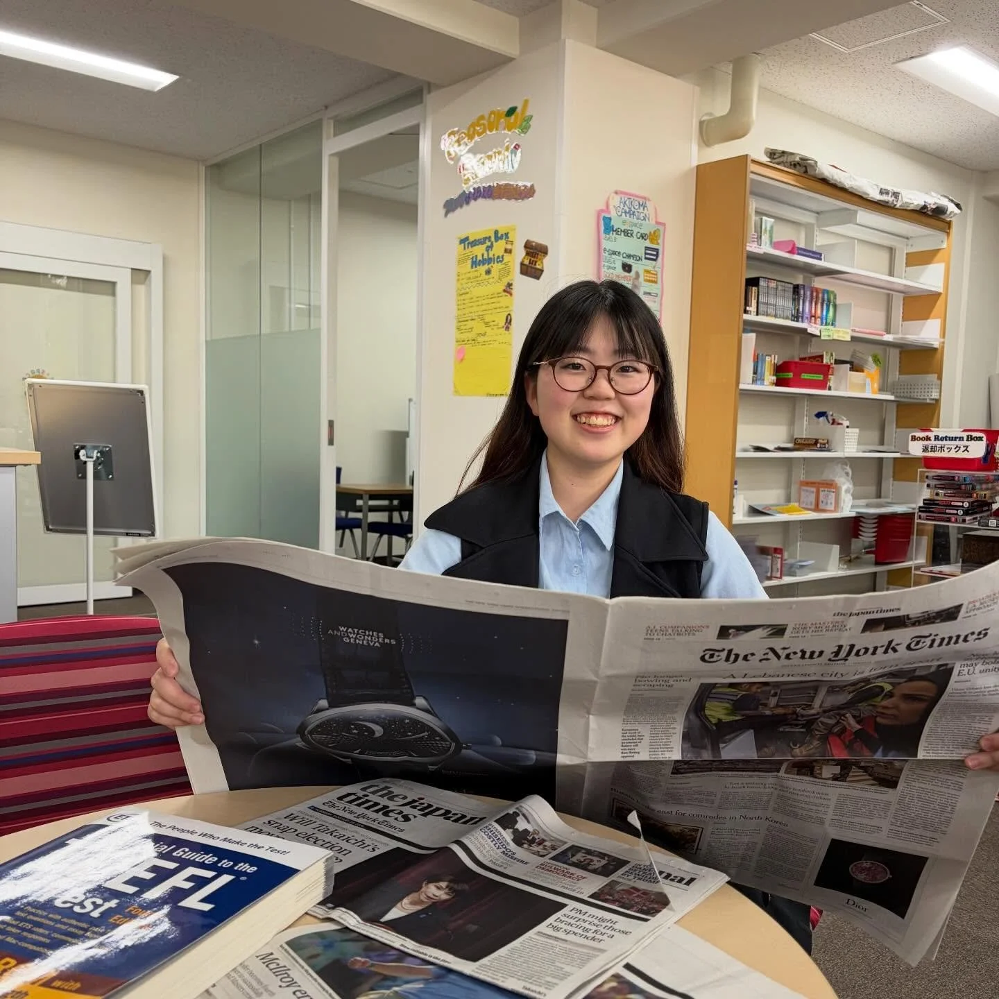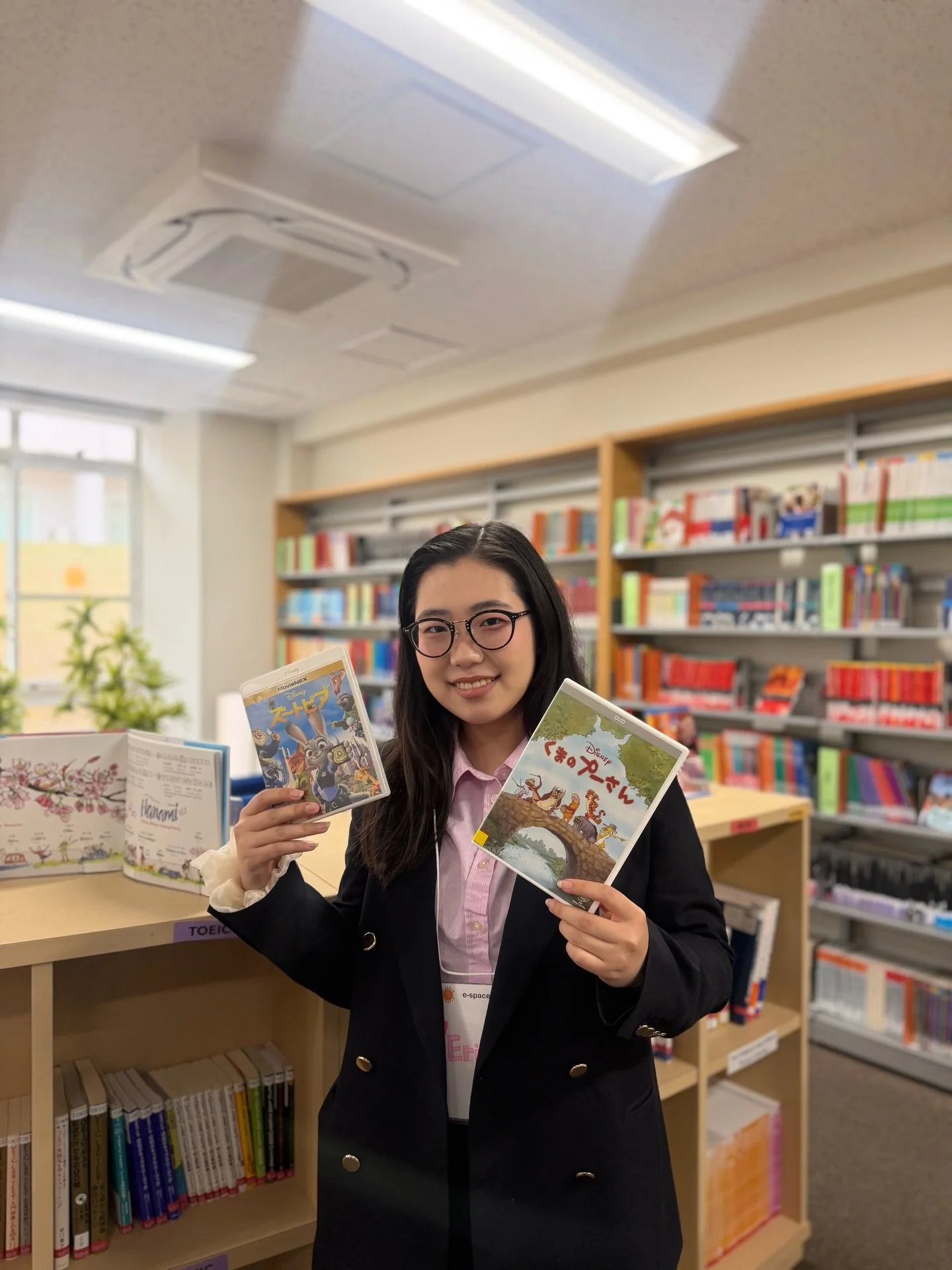 e-spaceには英語レベル別読本、海外の雑誌、絵本、漫画、各種試験対策本、海外の映画やゲームなどがあります。
